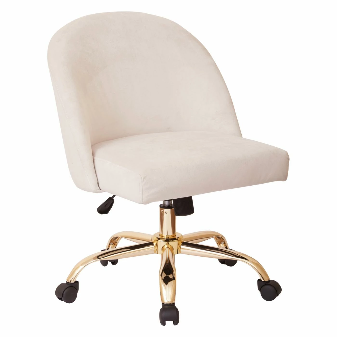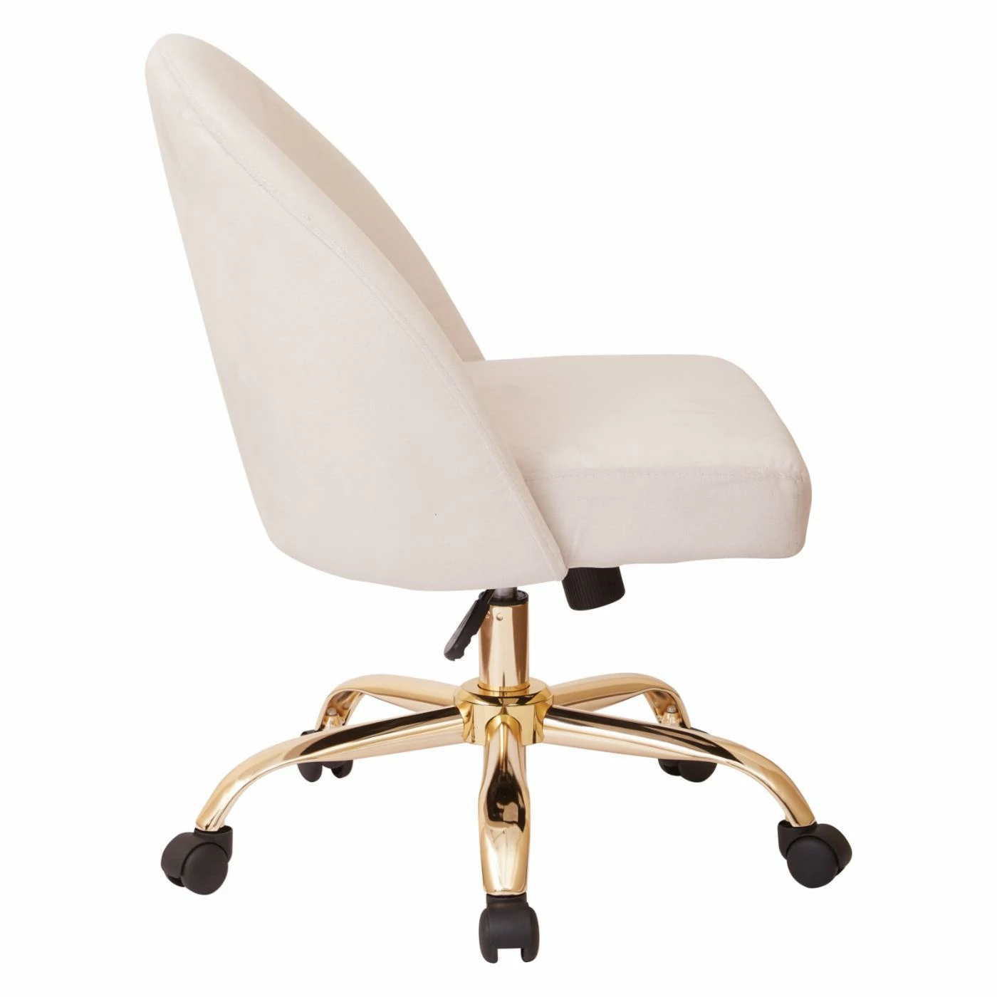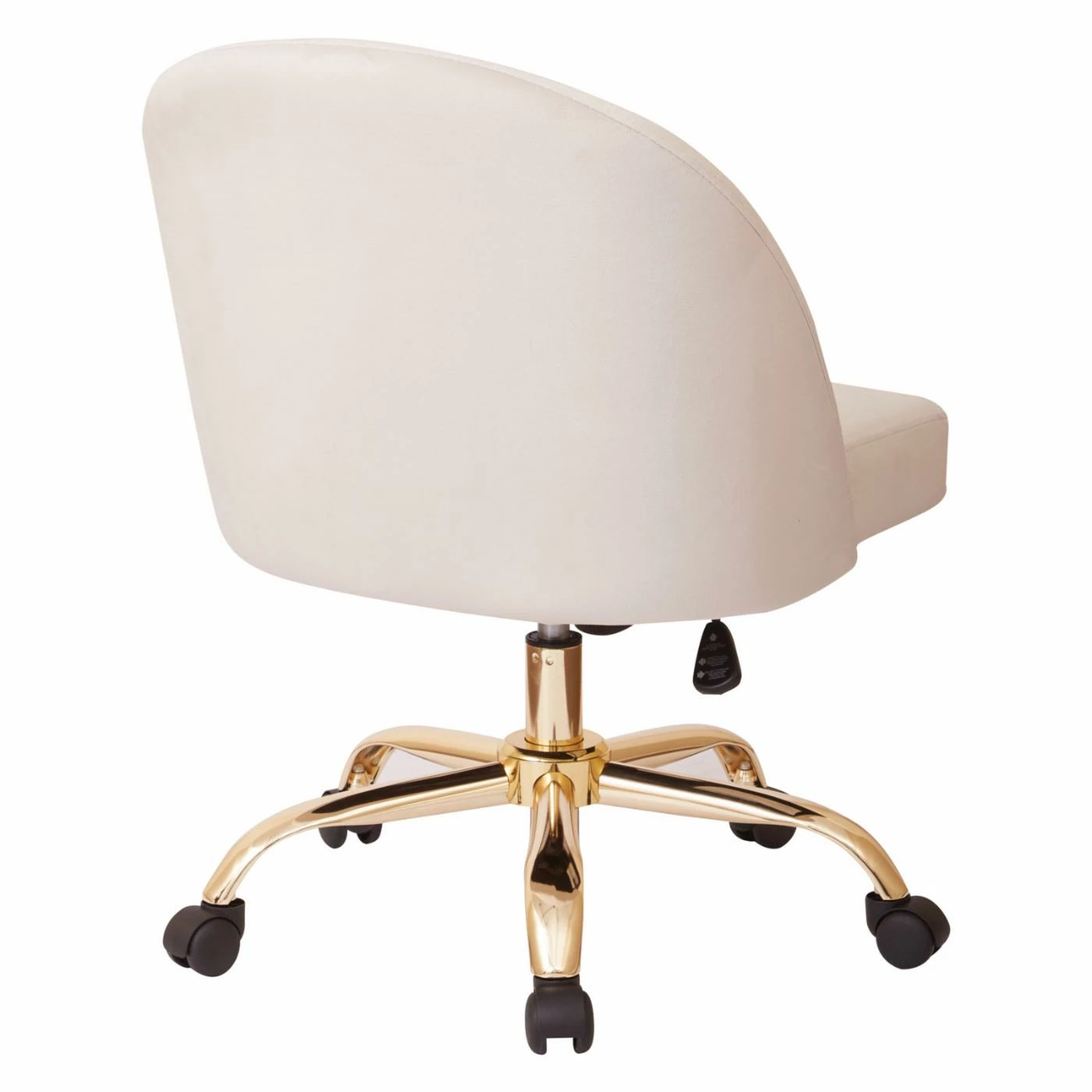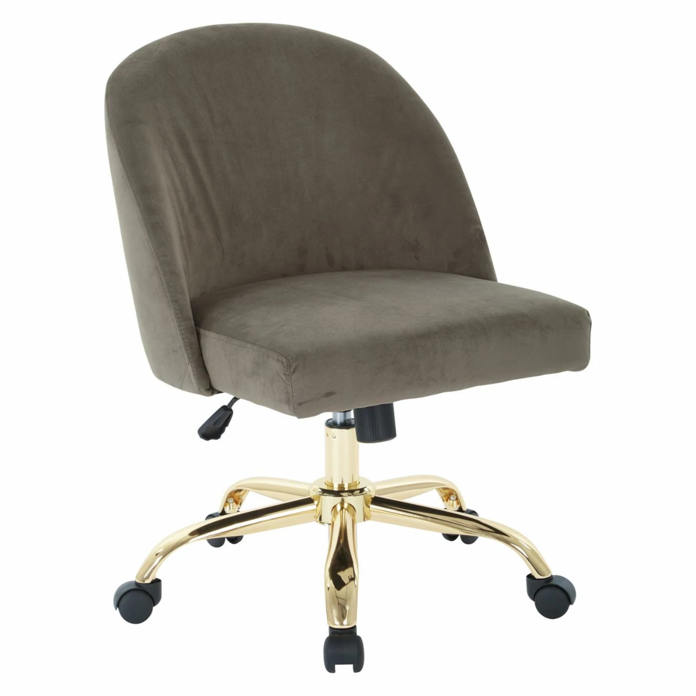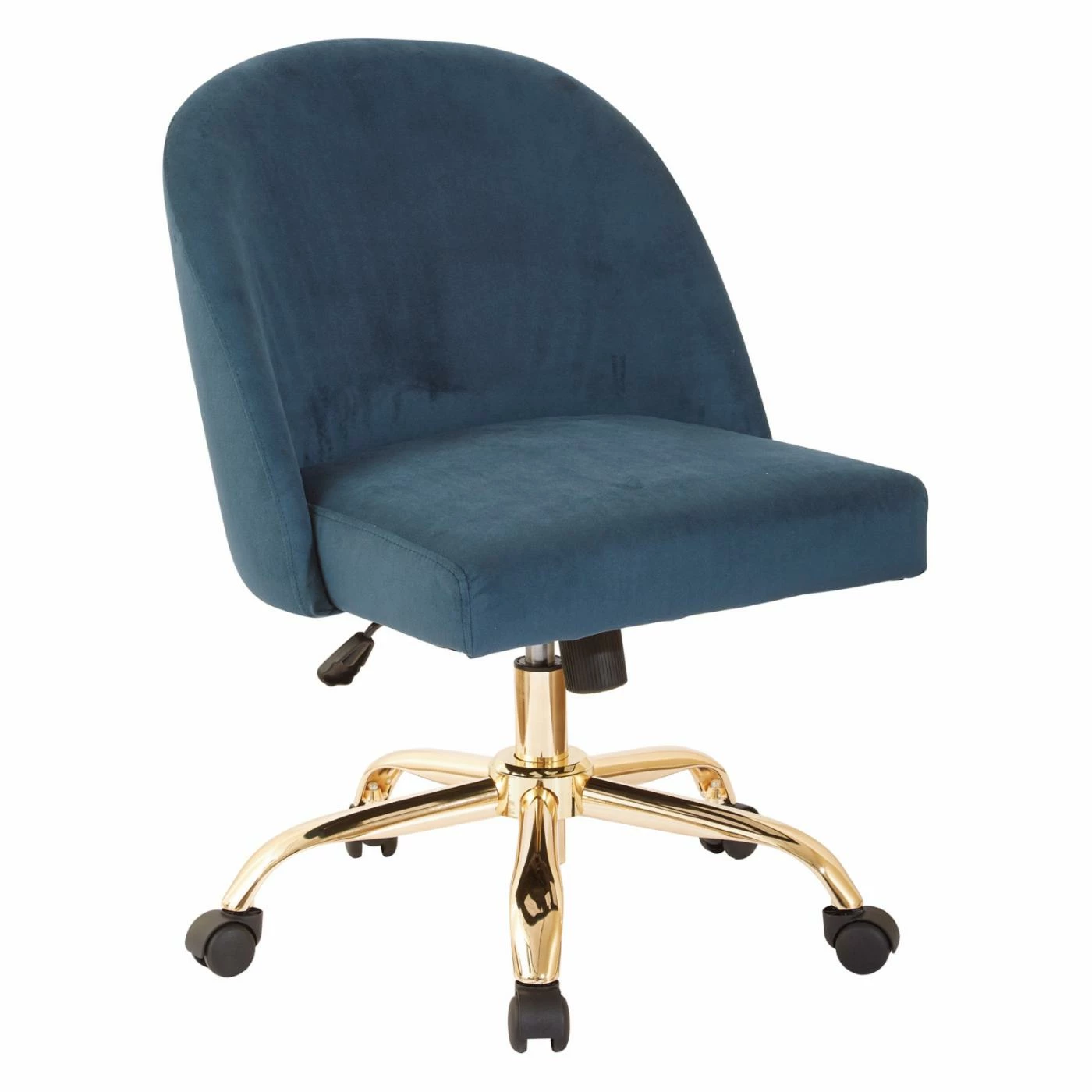 Go glam in your office with the OSP Home Furnishings Layton Mid-Back Fabric Office Task Chair. Its classic five-star base with heavy-duty casters comes in a chic gold finish. The chair boasts a comfortably curved back and generous seat upholstered in your choice of available polyester velvet color. An adjustable, swiveling seat ensures ergonomic comfort.