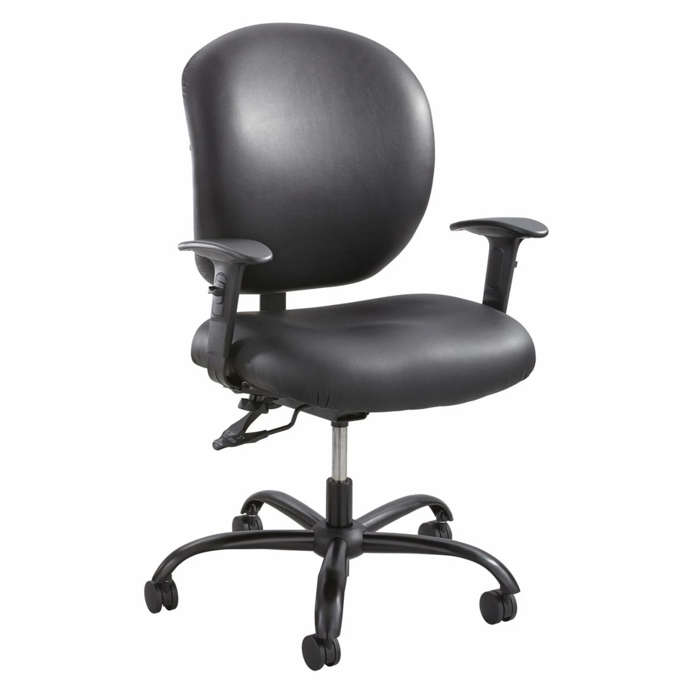 Designed for those all day shifts, the aptly named Safco Alday Task Chair offers ample, supportive cushioning shaped to fit a variety of body types. The black vinyl upholstered seat features a plastic ergonomic core back as well as pneumatic seat height adjustment, 360-degree swivel, tilt adjust with tilt tension and tilt lock, and back height adjustment. The metal and plastic frame includes rolling casters, and the task chair can accommodate up to 500 pounds.