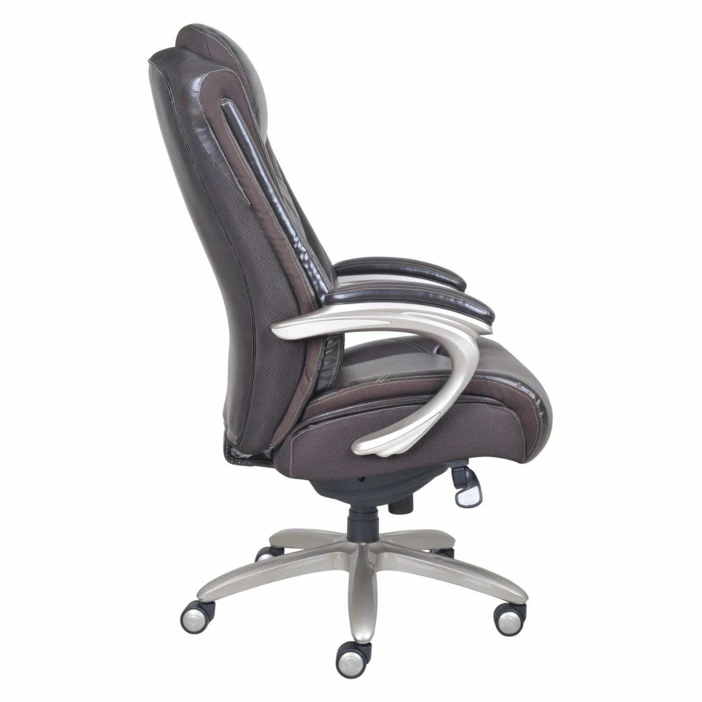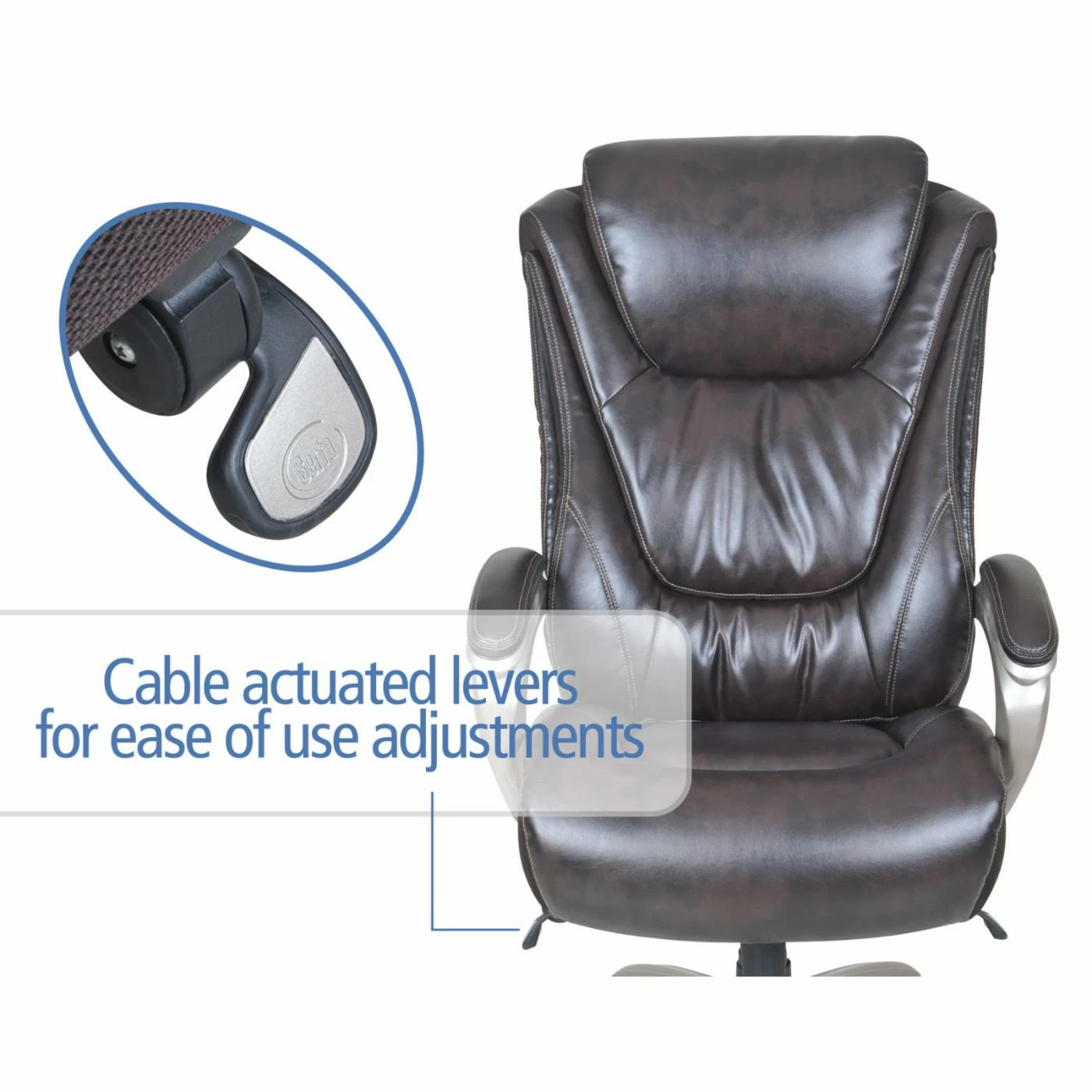 The Serta Smart Layers Big and Tall Executive Leather Office Chair alleviates strain and discomfort with its elevated headrest and an adjustable contoured lumbar zone. The deep, layered body pillows and foam seating offer premium comfort. This roomy chair easily accommodates up to 400 pounds. Upholstered in supple bonded leather, this chair is available in your choice of colors.