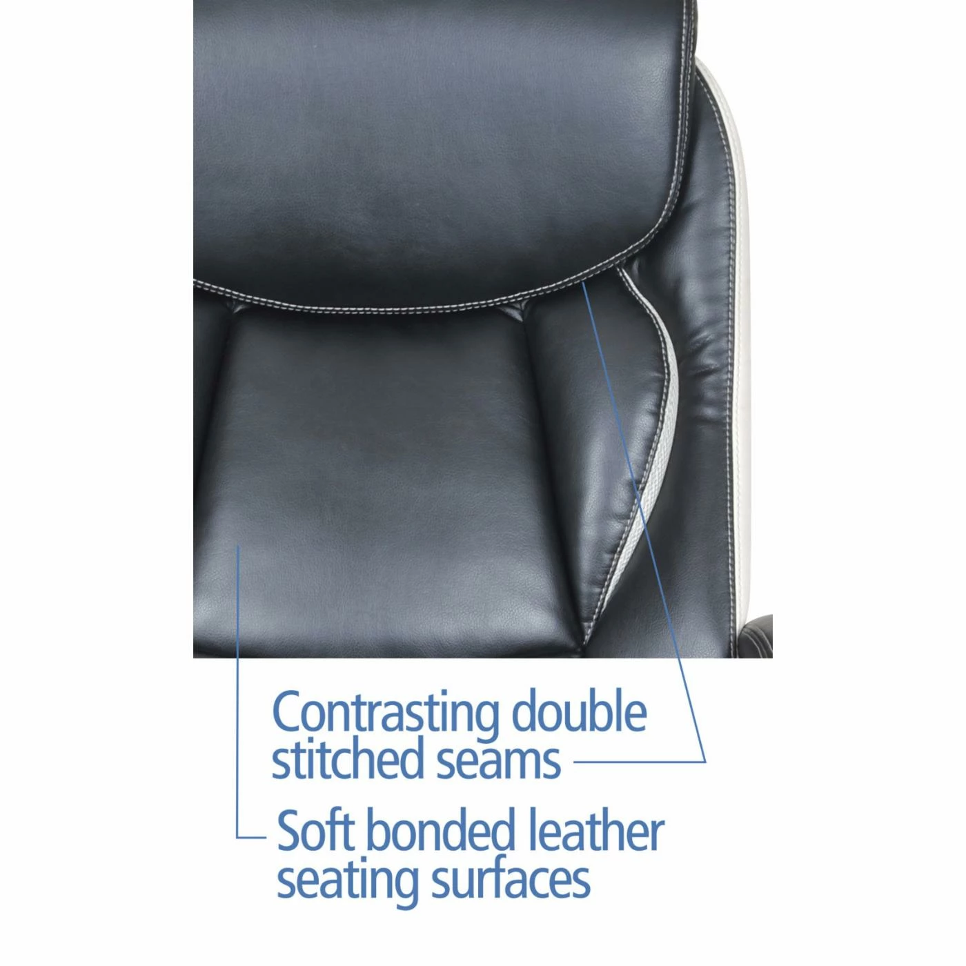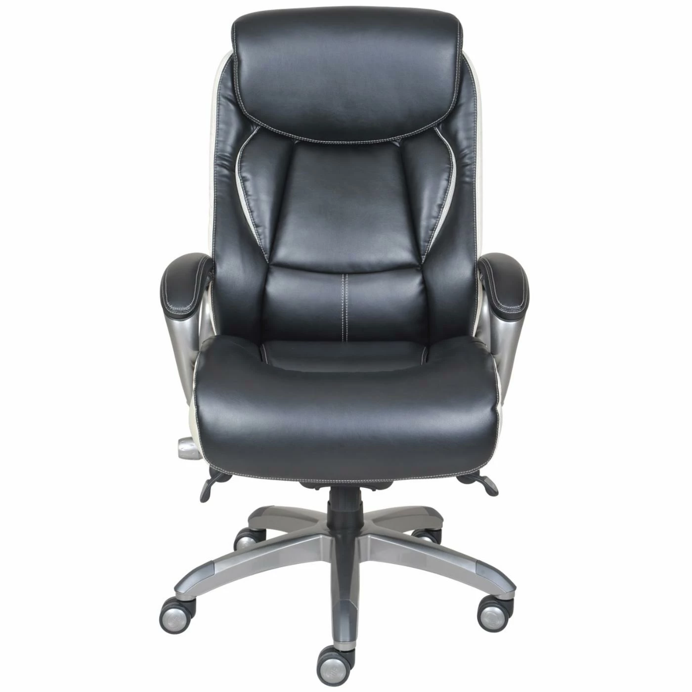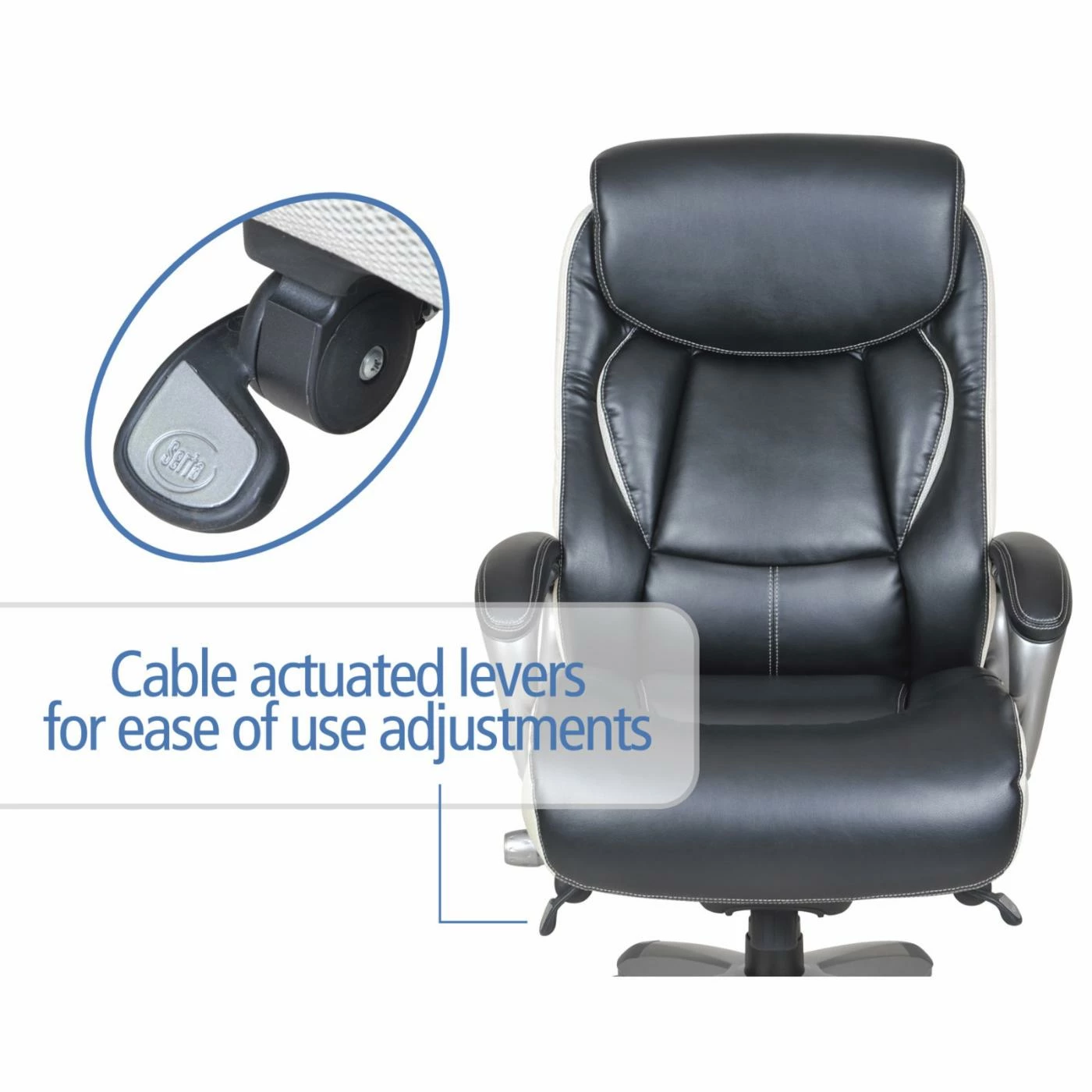 With its soft leather upholstery, pillowed headrest, and premium five-layer cushioning system, the Serta Smart Layers Executive Office Chair provides support and comfort throughout the workday. Use the easy-to-reach controls to adjust the height and arm position to improve your posture.